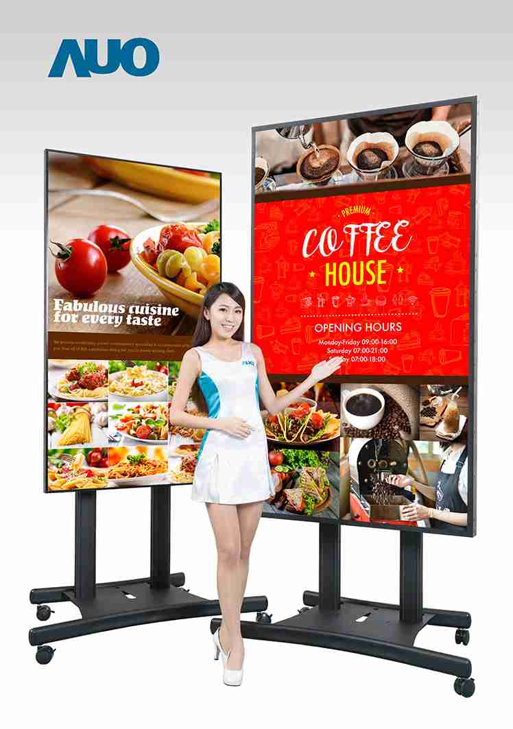 尊龙z6于公共讯息显示器应用深耕多年,,成功开发超大尺寸、、、、高解析、、、、高亮度、、、广色域、、极窄边框、、双面显示、、、超宽型屏幕等全方位公共讯息显示器,,,,并提供全系列整机产品,,,可依据客户广告需求和环境条件,,,,提供包含软硬件整合设计及售后服务的客制化解决方案。。。